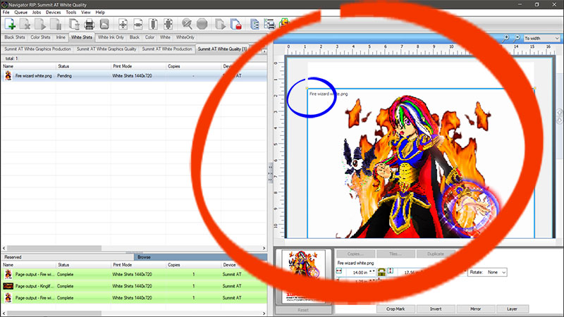 These Instructions cover the basic steps taken to print a white shirt, using the default print quality. The defaults have been set to the most common settings for production. In the Colored Shirt and Black Shirt Documents we will cover adjusting resolution and ink flow.